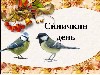12 ноября- СИНИЧКИН ДЕНЬ. Время напомнить людям о необходимости заботиться о птицах, подкармливать их. Дата празднования была выбрана не случайно, по поверью славян с давних пор именно в этот день к жилью человека прилетают зимующие пернатые, это день встречи зимующих птиц. Люди заботились о птицах, остававшихся на зимовку, и заготавливали для них лакомства: несолёное сало, нежареные семечки, зерно, готовили кормушки, читали стихи про птиц, загадывали загадки, играли и просто любовались зимними птахами.