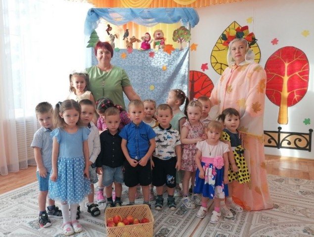 Осень, осень к нам пришла ! Всех нас в гости позвала В лес осенний мы пойдём С ней станцуем и споём Зашагали по дорожкам Наши маленькие ножки Во второй младшей группе "Радуга"воспитатель Трясцына Наталья Борисовна прошёл праздник с элементами кукольного театра "Яблонька"дети пели и танцевали, осень с подарками и гостями встречали.