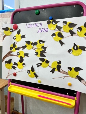 НОЯБРЬ 2025г. 12 ноября в нашей стране отмечается Синичкин день - экологический праздник. Дети младшей группы в этот день узнали много нового о зимующих птицах: рассматривали иллюстрации, отмечая особенности внешнего вида и название, повадки птиц. Слушали сказку про синичку, играли в подвижную игру «Птички в гнездышках», выполнили аппликацию. В ходе беседы решали проблемные задачи: какую пользу приносят птицы? Почему им необходима помощь человека зимой? Чем можно кормить птиц, а чем нельзя. Все ребята сделали для себя вывод, что желтогрудые шустрые синички и другие птицы нуждаются в нашей заботе и помощи не только в свой праздник, но каждый день зимой.